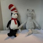 This lot includes two Kohls Cares Dr. Seuss character plush toys, one featuring Cat in the Hat and the other featuring Natch. Both stuffed animals are medium-sized, measuring between 14-24 inches. The toys are multicolored and perfect for Birthdays or any special occasion. The brand of these toys is Kohls Cares and they were made in China. The age level recommended for these toys is 3-4 years old, making them perfect for young children. These plush toys are a part of the beloved Dr. Seuss character family. Finally, this lot comes in a custom bundle that is perfect for fans of Dr. Seuss and stuffed animals.