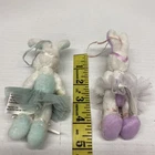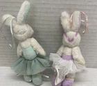 Lot of 2 Mini Plush Easter Rabbit Bunny In Tutus ornaments 4" purple teal