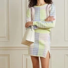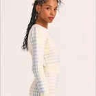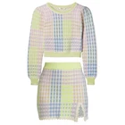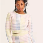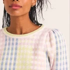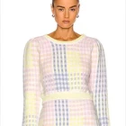 Dolana Crop Pullover is a dreamy layering piece in a cotton-wool blend with a multicolored check intarsia pattern. This mid-weight sweater has striped ribbing at the scoop neck, cropped bottom and puffed sleeve openings. - Crew neck - Puff long sleeves - Cropped length - 45% nylon / 30% cotton / 25% wool - Retail $265 Sweater ONLY. Excellent condition, no flaws to note!