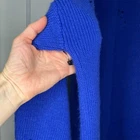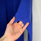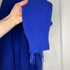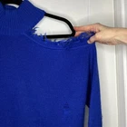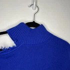 This is the Lovers & Friends Arlington sweater in a size medium and cobalt blue color. It is a wool and acrylic rib knit material, features distressing throughout, an open shoulder on the left side and a mock turtleneck neckline. Excellent Used Condition - No stains, holes, tears or other notable issues. There is a white thread that is woven into the knit on the back - not sure this is an issue, but wanted to point it out. Approximate Measurements: Length: 24" Chest: 52" Shoulders: 25.5" Sleeve length: 21" Sleeve Opening: 7.5" Bottom Hem: 42" Turtleneck height: 3.5" If you have any questions, or would like any additional measurements, please ask!
