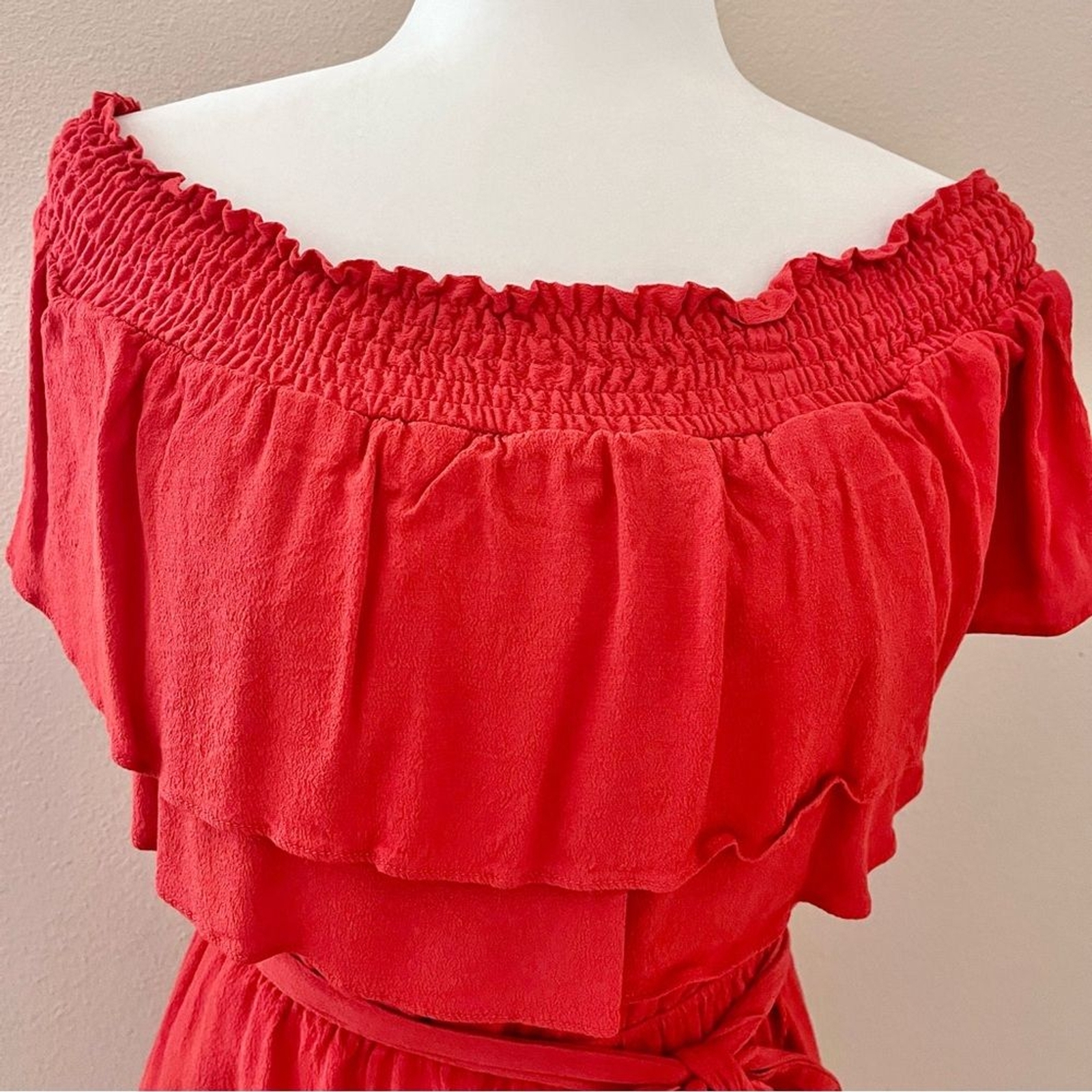 Lovers + Friends Orange Ruffle Dress Off The Shoulder Tie Waist Size Medium Worn once to a baby shower One string to hold the tie in place came detached. No other flaws All items ship the next business day! I love offers & give generous discounts on bundles
