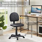 Features 【 Comfortable】This armless office chair seat cushion is highly durable and resistant to deformation, providing essential comfort and support for long periods of use. Its curved backrest design offers excellent back support to help alleviate discomfort and prevent tension in the lumbar area. 【 Durable】Built to last, this desk chair with wheels has a solid and sturdy frame that is capable of supporting up to 250 pounds of weight. The materials used are carefully selected for their durability and longevity, making it a great investment for any home or office. 【 Adjustable】This home office desk chair offers both swivel and height-adjustable features, providing maximum versatility for any user. Its 360-degree swivel function allows for easy access to different working areas, while its adjustable height feature ensures the perfect seating position, whether working at a desk or relaxing in front of a vanity mirror. 【 Easy to Install】You can easily complete the installation by following the installation we provide. Assembly is quick and straightforward, allowing you to immediately enjoy the comfort and style of your new chair. If you have questions about the installation of this chair or anything else, please feel free to contact us. Specifications : Materials: PU Color: Black/Brown Swivel: Yes Height Adjustable: Yes Overall size: 22" L x 22" W x (32.5" -37.2")H Seat Size: 17.3" L x 17.1" W Back Size: 14" W x 19.7" H Weight Capacity: 250 lbs Distance from ground:19"-23.8" Packing list: 1x Adjustable Office Chair 1 x Accessory Bag 1 x Instructions Note: 1. Please allow ± 1/0.5'' error due to manual measurement. 2. When viewing the color of the product on your monitor, it may differ from the actual color of the item.