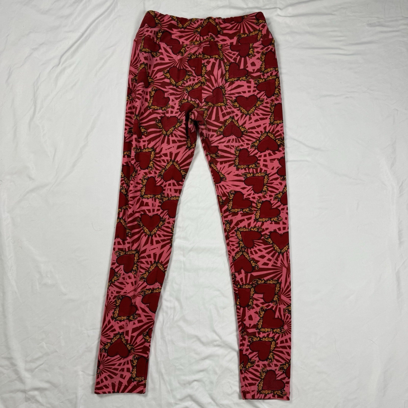These LuLaRoe One Size leggings feature a bold and vibrant allover print of sacred hearts in deep red with golden accents, set against a pink patterned background. Made from a super-soft and stretchy polyester-spandex blend, they offer a comfortable fit perfect for lounging or making a statement out and about. Eye-catching and unique, these leggings are great for collectors of rare LuLaRoe prints or anyone looking to add some pop to their wardrobe. ⸻ Item Specifics • Brand: LuLaRoe • Size: One Size (OS) • Type: Leggings • Department: Women • Material: 92% Polyester, 8% Spandex • Color: Pink, Red, Yellow (accents) • Pattern: Sacred Heart Graphic Print • Style: Pull-On Stretch Leggings • Waist Size: Approximately 13” flat (unstretched) • Inseam: Approximately 26” • Rise: Approximately 9” • Features: Stretch, Elastic Waist, Lightweight, Soft Fabric • Occasion: Casual, Lounge, Everyday Wear • Country/Region of Manufacture: China • Care Instructions: Machine wash cold, gentle cycle; tumble dry low • Condition: Pre-owned, excellent condition — no visible flaws