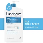 Product Description Lubriderm Daily Moisture Body Lotion, Hydrating, Pro-Ceramide, VitaminB5, Shea Butter & Glycerin, For All Skin Type, Unscented, 24 Ounce (Pack Of 8) From a dermatologist developed brand, this daily moisturizing lotion provides clinically proven 24-hour hydration and helps achieve healthier-looking skin. It is formulated with Pro-Ceramide and glycerin to help restore your skin's moisture barrier. This lotion has a non-greasy, unscented formula that is suitable for the body and face and won't clog your pores. The fast-absorbing formula of this fragrance-free body lotion is suitable for all skin types, even sensitive skin. The allergy- and dermatologist-tested lightweight body lotion is free of parabens, phthalates, and dyes. Lubriderm Lotion Fragrance- Free with Pro-Ceramide for healthier-looking skin The skin & body moisturizer is clinically proven to hydrate & moisturize dry skin for 24 hours Lightweight daily lotion for all skin types is suitable for body & face, & won't clog your pores Unscented lotion helps to restore skin's moisture barrier for healthier-looking skin Suitable for sensitive skin, the lotion is unscented & has a non-greasy, fast-absorbing formula The lightweight body lotion is formulated with Pro-Ceramide and glycerin to penetrate within skin's surface to help restore skin's moisture barrier. Non-greasy moisturizing lotion with shea butter won't clog pores and it is suitable for the face and body. The hydrating lotion can be used on all skin types, including sensitive skin The fast-absorbing daily moisture lotion has been allergy- and dermatologist-tested and formulated free of fragrances, parabens, phthalates and dyes From a brand developed by dermatologists, Lubriderm Daily Moisture Lotion + Pro-Ceramide helps restore skin's moisture barrier. To use, smooth on face, hands, and body daily or as directed by a physician. Daily Moisture Lotion from Lubriderm, a dermatologist developed brand. Ingredients Water, Mineral Oil, Glycerin, Carbomer, Potassium Cetyl Phosphate, Phenoxyethanol, Cetyl Alcohol, Sodium Polyacrylate, Caprylyl Glycol, Hydrogenated Palm Glycerides, Sodium Hydroxide, Butyrospermum Parkii (Shea) Butter, Disodium EDTA, Avena Sativa (Oat) Kernel Oil, Magnesium Aspartate, Zinc Gluconate, Copper Gluconate