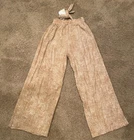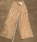 Experience effortless style with these LulaRoe tan palazzo pants, designed for those who appreciate a blend of comfort and chic. The wide-leg silhouette lends an air of bohemian grace, perfect for casual outings or your next beach getaway. With a mid-rise waist and an elastic waistband, these pants offer a snug, yet comfortable fit that flatters the figure and makes on-the-go dressing a breeze. Crafted from a soft mix of rayon and spandex, the fabric provides a gentle stretch, ensuring freedom of movement throughout your day. The pull-on style eliminates the need for cumbersome zippers or buttons, making them an ideal choice for travel. Accented with a faux sash tie belt that adds a touch of elegance, these pants embody relaxed elegance and are a versatile addition to any wardrobe. Note: Waist will stretch to a 28.