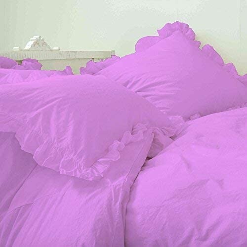 Luxury Bedding Set 100% Cotton Princess Ruffles Duvet Cover Bedroom This luxury bedding set is a three-piece duvet cover set made of 100% cotton with ruffle pattern, perfect for adding a touch of elegance to any bedroom. The duvet cover features boho style design with a zip closure for easy maintenance. Ideal for teens, adults, kids, and toddlers, this handmade set is machine washable and easy to care for, making it a convenient and stylish addition to your home decor. Made in India with a high thread count of 201-400, this duvet cover set exudes a sense of luxury and sophistication. Item included - 1 PC Duvet Cover With 2 PC Pillow Covers Material - 100% Soft Cotton Fabric Feature - Ruffle Design Color - Purple Closure - Back Side Zip Closure Wash Care - Dry Clean SIZE CHART : Twin - 68" x 90" inches & Pillow Size is 20" x 30" inches Twin XL - 59" x 102" Inches & Pillow Size is 20" x 26" Inches Full - 80" x 90” Inches & Pillow Size is 20" x26” Inches . Queen - 90" x 90” Inches & Pillow Size is 20" x 30” Inches . King - 90" x104” Inches & Pillow Size is 20" x 36” Inches. Cl.king - 98" x104” Inches & Pillow Size is 20" x 36” Inches. We ship order order by FedEx, & Dhl Express, hence rest assured for prompt delivery of your order. NOTE : International buyers are responsible for their countries duties and taxes.