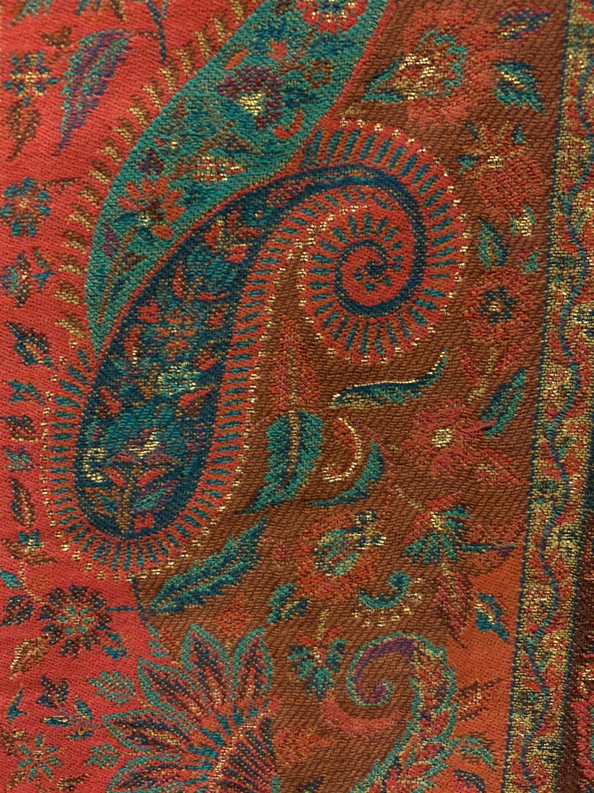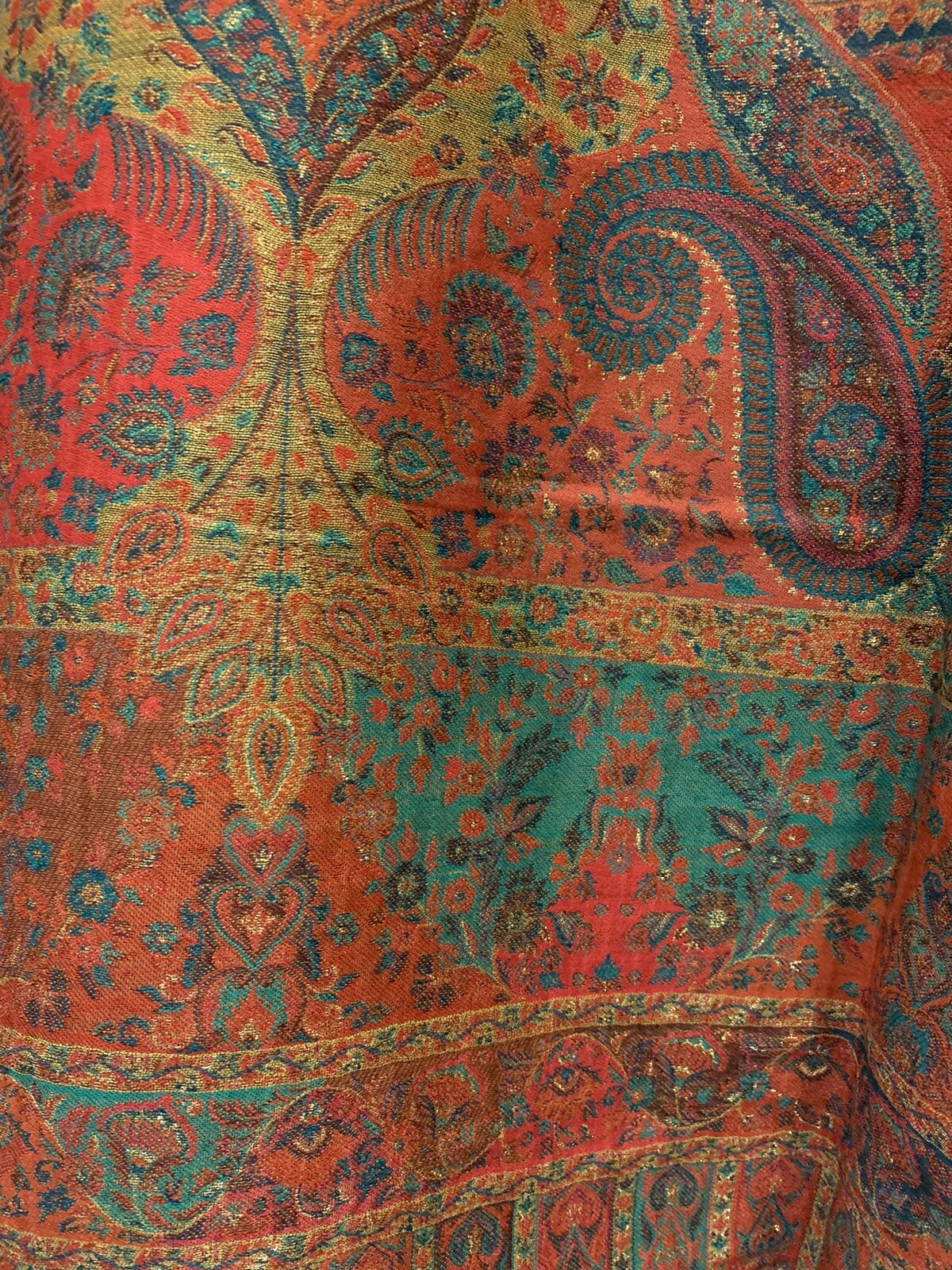 Brand new cashmere scarf(except embroidered line) Width: 44 inch, length 79 inch. Made in India Number #9506