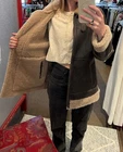 Brand new reversible warm winter coat. Zero wear, and extremely well made with real leather and sherpa. Color is a nice taupe/brown leather with beige shearling. Got in Aspen, CO as a gift and do not need in my wardrobe. Thanks!