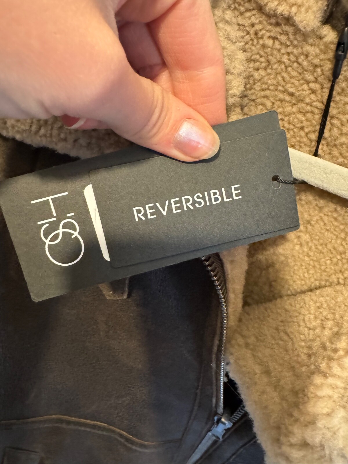 This coat is absolutely stunning—luxurious real leather and cozy shearling make it a winter essential. The reversible design is genius, and the taupe/brown shade is so versatile. Incredibly well-made, warm, and looks high-end. Got it as a gift but it’s too nice not to share!