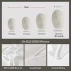 FAREWELL FACIAL CREASES-Your skin will glide effortlessly across the ultratight 30 momme weave of our luxurious silk pillowcase, fighting wrinkles while you sleep. DITCH THE DRY SKIN-Skip cotton or satin covers that steal moisture. Our superiorly soft silk pillowcase helps you retain moisture for the secret to glamorous, glowing skin. BYE BYE BREAKOUTS-Fight acne while you snooze with the natural amino acids found in pure mulberry silk. Our ultra soft pillowcases, made of natural fibers, won't irritate skin or clog pores. Hello beauty sleep! NO MORE KNOTTING-Sleek hair starts with your sleep! Proteins in 100% organic silk threads keep your hair moisturized, while the super smooth finish prevents knotting and breakage for effortlessly luscious locks. THE BC GUARANTEE-Here at BELLA COTERIE we're on a mission to level up your beauty sleep. Treat yourself to our silk pillowcases risk-free for 30 days with our 100% customer satisfaction guarantee. Once you sleep in the lap of luxury, you'll never go back! Product Description Invest In Your Rest Traditional bedding is working against your hair, skin, and sleep quality. Treat yourself to true beauty rest by indulging in Bella Coterie luxury bedding. Once you sleep in the lap of luxury, you'll never turn back! BELLA COTERIE Live Lavishly At Bella Coterie, we believe everyone deserves the luxury of a great night's sleep, so we're on a mission to help you level up your sleep experience. We bring an expensive resort look and feel right to your home with premium bamboo sheets and silk pillowcases. Slip into our buttery soft bedding each evening and feel the stress of your day melt away. You deserve to live lavishly with Bella Coterie products that are always: Crafted from Premium Materials OEKO-TEX Certified Free From Harmful Chemicals Only the Best for Your Beauty Rest 100% 6A Mulberry Silk We pride ourselves on crafting premium bedding so you can sleep in the lap of luxury. Which is why we only use 100% 6A mulberry silk, the highest grade silk available. Bella Coterie is quality you can count on. 30 Momme Momme is used to measure the density and quality of silk fabric. Just like thread count, the higher the momme, the better the silk. Don't settle for 20 or 22 momme when you can indulge in a 30 momme silk pillowcase from Bella Coterie. Zipper Closure Nothing's worse than your pillow slipping and sliding out from under you while you're sleeping. Each cover features a zipper closure to secure your pillow and ensure you sleep soundly. Upgraded Stitching Durably crafted from the finest silk, Bella Coterie's plush pillow protectors are built to last. You won't regret investing in your rest when you are still enjoying your silk pillowcase for years to come! Tame Bedhead Are you sick and tired of waking up with a tangled mess of drab, dull, bedhead? Your ordinary pillowcase is tugging and pulling on your strands while you sleep, causing breakage, frizz, and tangles. Bella Coterie's superiorly smooth, non-absorbent pillowcase reduces friction and maintains the natural oils in your hair to take your locks from ordinary to extraordinary. Ideal for every hair type - improve your hair health, save your style and smooth your strands with the magic of silk! Skin Saving You work hard to maintain beautiful, healthy skin. Why use a pillowcase that is working against you? Traditional cotton bedding absorbs your skin products, contributing to dryness and acne. 100% pure mulberry silk is non-absorbent, keeping your serums and creams on your face at night and helping you maintain moisture and vital skin nutrients. The non-abrasive nature of silk glides over your skin, preventing wrinkles. Plus, real silk contains naturally occurring amino acids that help fight acne and banish blemishes. The secret to radiant, glowing skin is a good night's sleep with Bella Coterie! Cozy & Cool Looking for the perfect year-round bedding? The thermo-regulating powers of natural organic silk keep you cool in the summer and cozy in the winter. No more sweaty nights spent tossing and turning, flipping to the cool side of the pillow for some relief. With Bella Coterie, you'll sleep soundly and wake refreshed, ready to take on a new day each morning! LIVE LAVISHLY WITH BELLA COTERIE At Bella Coterie, we believe everyone deserves the luxury of a great night's sleep, so we're on a mission to help you level up your sleep experience. Slip into our buttery soft bedding each evening and feel the stress of your day melt away. Our luxurious silk pillowcases bring a lavish resort look and feel right to your home and are the perfect addition to our premium bamboo sheet sets. Available in standard, queen, or king size to fit any bed or room. ONLY THE BEST FOR YOUR BEAUTY REST Every detail of our pure silk pillowcase has been engineered to help you sleep better, feel better, and look better. Each sleek pillow slip is crafted from premium 6A mulberry silk thread. Our 30 momme weave creates a cover so soft and smooth, you'll never sleep on cotton or satin again! THE SECRET IS IN THE SILK You work hard to maintain beautiful skin and har, but your traditional pillowcase is working against you. Give your expensive cosmetic products a boost by adding a pure silk pillowcase to your beauty routine. The 100% natural silk in our pillow protectors is known to: MAINTAIN MOISTURE Real silk threads absorb less of your skin and hair products than cotton or satin, which pull moisture from your face and contribute to dryness. If you want to wake each morning with a natural, dewy glow and sleek, shiny hair, you need a real silk pillowcase. REDUCE FRICTION Our super tight 30 momme weave was designed to help your head glide effortlessly across the pillow case with no tugging or pulling. This helps fight wrinkles, reduces hair tangling and breakage, and keeps your lashes looking luscious. BANISH BLEMISHES Pure mulberry silk contains natural amino acids and proteins beneficial for skin and hair health. Fight blemishes while 