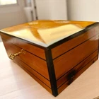 The jewelry box is very pretty, very carefully made, very much in the style of "good old craftsmanship". The seller is nice and helpful, he answers emails immediately. The shipment was delayed, but it was not the seller's fault, I was informed about it. It arrived on time. I recommend the seller and his items.