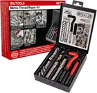 Used for repairing damaged or stripped internal threads and creating a stronger internal thread. Suitable for all metals, composites, polymers and other materials. Our thread repair kit can be widely used in automotive and plumbing applications. 304 Stainless thread inserts create longer lasting durable threads, increase the possibility of higher torque application in weaker metals. 135° apex angle of twist drills, with stronger metal penetration and higher efficiency Thread repair kit includes a collection of tools including HSS drill, tap, thread inserts, installation tool, break pin tool. All the parts are organized in a convenient iron case for easy transport and storage between jobs. Attention: Before you buy this kit, please make sure which size do you need. If you don't know, Please see the picture 6. Product Description 1 Step 1: Drill 2 Step 2: Tap 3 Step 3: Install 4 Step 4: Tap down Thread Repair Kit Instruction Be sure to keep the drill at a 90-degree angle to the surface when drilling. Cut threads in the hole with the tap provided, and be sure to lubricate the tap with cutting oil. Ensure that the tap is properly aligned and perpendicular to the workpiece to prevent cross-threading. Clamp the appropriate tap in a tap wrench. Commence the thread cutting using firm and even pressure - with a quarter turn clockwise, followed by a quarter turn anti-clockwise to clear the metal shavings from the thread. Attention: This product is not suitable for spark plug thread repair!!! Metric Thread Repair Kit Metric Thread Repair Kit HSS Material of Drill HSS M5 x 0.8 Size M6 x 1.0 304 Stainless Material of Inserts 304 Stainless 25x Number of Inserts 25x HSS Material of Drill HSS M5 x 0.8 Size M8 x 1.25 304 Stainless Material of Inserts 304 Stainless 25x Number of Inserts 25x HSS Material of Drill HSS M5 x 0.8 Size M10 x 1.0 304 Stainless Material of Inserts 304 Stainless 25x Number of Inserts 10x HSS Material of Drill HSS M5 x 0.8 Size M10 x 1.25 304 Stainless Material of Inserts 304 Stainless 25x Number of Inserts 10x Metric Thread Repair Kit Metric Thread Repair Kit Metric Thread Repair Kit Metric Thread Repair Kit Metric Thread Repair Kit Metric Thread Repair Kit HSS Material of Drill HSS M10 x 1.5 Size M12 x 1.25 304 Stainless Material of Inserts 304 Stainless 10x Number of Inserts 10x HSS Material of Drill HSS M10 x 1.5 Size M12 x 1.5 304 Stainless Material of Inserts 304 Stainless 10x Number of Inserts 10x HSS Material of Drill HSS M10 x 1.5 Size M14 x 1.25 304 Stainless Material of Inserts 304 Stainless 10x Number of Inserts 8x Metric Thread Repair Kit Metric Thread Repair Kit Metric Thread Repair Kit SAE Thread Repair Kit SAE Thread Repair Kit HSS Material of Drill HSS 1/4-20 Size 5/16-18 304 Stainless Material of Inserts 304 Stainless 25x Number of Inserts 25x HSS Material of Drill HSS 1/4-20 Size 3/8-16 304 Stainless Material of Inserts 304 Stainless 25x Number of Inserts 10x HSS Material of Drill HSS 1/4-20 Size 7/16-14 304 Stainless Material of Inserts 304 Stainless 25x Number of Inserts 10x SAE Thread Repair Kit SAE Thread Repair Kit SAE Thread Repair Kit