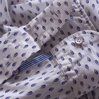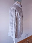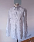 Gently used condition with no faults found. Measures 17" shoulder to shoulder seam, 21" pit to pit, 30" nape to hem, 25" sleeve. 100% cotton. White background with blue leaf or feather design.
