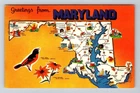 MD-Maryland, Scenic Greetings, Map Landmarks, Vintage Postcard