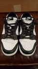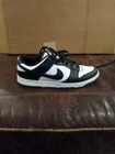 This pair of Nike Dunk Low sneakers is perfect for any activity, whether it's walking, playing basketball, or running and jogging. The shoe features a low top shoe shaft style, lace-up closure, and a multicolor design with a panda theme. The upper is made of leather and the lining is made of fabric, while the outsole is made of rubber for durability. The sneaker is cushioned, comfortable, and breathable, making it ideal for summer, fall, and spring. It's a pre-owned item with a US shoe size of 10.5 and a UK shoe size of 9.5. The Nike Dunk Low is a popular choice for athletic shoes, and this particular model is part of the Nike Dunk product line. Don't miss out on the chance to add this stylish and functional sneaker to your collection. SNEAKERS ARE PRE OWNED IN VERY GOOD CONDITION