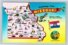 MO-Missouri, Map, Landmarks, General Greetings, Vintage Postcard