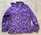 Ladies Purple printed padded hooded jacket from MOUNTAIN WAREHOUSE High neck full zip fastening Fully lined & padded Front zipped pockets Hood Please note: There are a few scuffs around the pocket and cuffs Material: 100% polyester Lining& wadding : 100% polyester Label size: UK 12 Garment measures: Pit to pit: 22" Pit to hem: 17" Neck to hem: 28" Pit to cuff: 20" Stock ref: 3581 / 03124