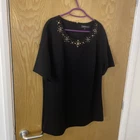 Tight stretch. Thick fabric so the blouse has some weight to it. The item is in good use condition. Approx measurements- 29” full length/ 19” armpit to armpit/ 6” sleeve. Please see all of the photos provided and check measurements.