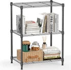 Carbon Steel 【Multifunctional Versatility】The storage shelves (11.8"D x 17.7"W x 26.3"H) are suitable for room, balcony kitchen, office, and garage shelving scenarios. 【Reliable Stability】Superior Carbon Steel and 15.9mm pipes enable this metal shelving to be sturdy and durable. Each shelf holds up to 150 lbs and the maximum entire unit weight capacity is 450 pounds. 【Adjustable Height for flexibility】Adjust the height of each shelf to accommodate items of various sizes based on your shelf storage needs. Enjoy the fun of DIY and more flexibility. 【Convenient Assembly】No tools required. Follow the instructions and the storage shelf can be set up quickly and effortlessly. 【Thoughtful Support】Quick response and solution can be provided within 24 hours. If you have any questions regarding missing parts and assembly, feel free to message us via Buyer Message. Product Description Fasten the plastic clip to the groove, and press it to make it more stable. The direction of the clip is indicated by an arrow and TOP. The four clips should be kept at the same height. Adjust the position of the plastic clips to adjust the height of each shelf. Slip the shelf into the pole and gently press it. The shelf cone is smaller at the top and larger at the bottom. Adjust the level (bottom) to ensure stability. (In case the ground is not flat.)
