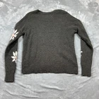 This Madewell sweater in size XS features a gray floral intarsia design made from a wool blend and polyamide material. The tight-knit pullover has long sleeves, a crew neck, and is lightweight, making it suitable for various occasions including travel, parties, casual outings, and workwear. This versatile sweater with a cozy wool blend is perfect for all seasons, providing a stylish and comfortable option for your wardrobe.