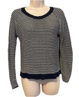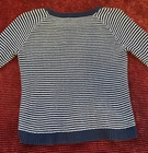 Madewell women’s sweater Great condition with no issues Very nice-comfortable-stylish Can be dressed up or down-versatile XS Navy blue and white striped Long sleeves Crew neck side slits 100% cotton knit fabric breathable Hand wash See pictures for best description. See measurements to ensure a proper fit. I provide mini measurements at every angle to help Sherry correct fit so please look carefully at all measurements. I am available to answer questions. Customer satisfaction is my top priority. Fast shipping Combine shipping welcomed Return/refund so you can shop with confidence. Thank you for looking and have a great day.