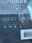 Madison Park Essentials Satin King 6pc Sheet Set in Black - Olliix SHET20-174 These silky high luster satin sheets are luxurious on any bed all year round. It has naturally wrinkle free properties and are machine washable. Fits up to a 16 inch. Store stock Buttons on the packaging does not snap properly. It is missing one button closure. Packaging is a little ripped on one of the edges Dust and sticker residual noted There is no damage to the sheet set Dimensions: 1 flat sheet:108" W x 102" L, 4 king pillowcases: 20" W x 40" L, 1 fitted sheet:78" W x 80" L x 14" D Luxurious silky satin sheets Wrinkle free and durable Fitted sheet fits up to 16-inch on the mattress depth Set includes 1 flat sheet, 1 fitted sheet, and 4 pillowcases Conveniently machine washable Machine washable Imported