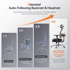 Highlights Patented Auto-Following Backrest MagicH-BPro Ergonomic Chair automatically adjusts to your back movements and offers you constant support, also promoting a natural S-curve for your spine when locked. Studies indicate that proper lumbar support reduces lumbar disc pressure by up to 50%. Renowned Experts Endorsement This chair is endorsed by experts such as Dr. Kevin Morgan, a prominent chiropractor; and Matt Penney PT, DPT, ATC from Advanced Sports Therapy. It encourages a relaxed, neutral back position, effectively mitigating and preventing injuries caused by improper postures, setting it apart from other chairs. Ultimate Comfort for WFH & Leisure The Auto-Following Headrest automatically adjusts to your head and neck movements, providing continuous and optimal support. It features a foldable footrest and is lockable across 4 key positions ranging from 96°-136° tilt, keeping you at ease continuously. This is really an ultimate WFH and leisure system. Tailored Ergonomic Chair Designs ergonomic chairs to meet different needs. With 4D armrests, a divided-stress-zone high-density sponge cushion, and an adjustable seat for height and depth, our chair ensures personalized comfort for long-time sitting. Suitable for people 5'3" to 6'3" tall. Guaranteed Quality It's equipped with a Class 4 SGS-certified gas lift and boasts BIFMA and EN1335 certifications, ensuring its durability and reliability. Clear instructions and necessary tools make assembly effortless for everyone. General Type: Ergonomic Chair Model: MagicH-BPro Color: Black Specification Backrest: Mesh, Patented Auto-following Mechanism With Auto-following Mechanism: Yes Footrest: Yes Lower Back Support Strength Adjustment: Yes Lower Back Support 4 Positions to Lock: Yes Rebound Sponge Cushion Seat: Yes Divided Stress Zone Cushion Seat: Yes Head Rest Adjustment: 15CM Height 51 Degree Angle Recline Adjustment: 96°/116°/126°/136° Back Rest Independent Height Adjustment: 6CM Seat Depth Adjustment: 37.5CM to 47.5CM Seat Cover Fabric: Water Proof, Anti-Static Seat Width: 51.8CM Seat Height: 44CM to 52.5CM Arm Rest Adjustment: 4D extended; 5CM Back Forward, 2CM Inside Outside, 20 Degree Turning Around, 7CM Up Down Base: Detachable Steel Base with Five-star Wheels (Aluminum, 4 1) Chair Overall Height (in): 41.3" to 52.4" Max Weight: 300 LBS Weight & Size Product Weight: 24.5kg Package Weight: 37kg Package Size(L x W x H): 68*41*53cm Package Contents 2 x 4D Armrest 1 x Auto-Following 1 x Backrest 1 x Footrest 1 x Headrest 1 x Divided-Stress-Zone Cushion 1 x User Manual