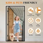 Magnetic Screen Door, Fits 36'' x 80'' DoorMesh Size 38'' x 81'', Left Right Side Opening, Scratch-Proof Polyester, Pet Friendly, Easy Install, Self Sealing, Keep Annoying Creatures Out, Grey VERSATILE SIDE OPENING DESIGN: Our magnetic screen door features a double-sided design that allows you to switch between left and right openings. No matter where your door handle is located, our screen doors can accommodate your needs. The middle and bottom of the screen door adopt a windproof buckle design, effectively consolidating and preventing the magnetic screen door from being blown open by the wind PRECISION FIT FOR YOUR DOOR: Door screen size: 38 x 81 inches—Fits door size: 36 x 80 inches. Please measure your door carefully before choosing the right size (excluding the door frame) STRONG MAGNETIC CLOSURE: Our screen door mesh is equipped with thickened widened magnetic it is equipped with dual magnetic blocks at the bottom of the magnet closure, ensuring a secure and seamless connection while adding a enhanced vertical hanging effect. Say goodbye to the hassle of manually closing doors and enjoy hands-free entry and exit FABRIC: Our screen doors are made of upgraded polyester that outperforms fiberglass. They are resistant to wear and tear and do not break easily, so our door screens have excellent properties in terms of wrinkle resistance, elasticity, and scratch resistance ENHANCED PROTECTION: Our magnetic door screens are made of high-quality 18 x 16 mesh. They provide excellent protection from the elements, allow fresh air to flow through, and offer good visibility while keeping annoying creatures out EASY INSTALLATION: Installing our side opening magnet screen door is quick and easy. Attach it to the door frame using the included hook&loop strips, and for added security, use the extra push pins provided. A clear installation instruction manual is also included for your convenience STRENGTH AND LONGEVITY: Our door mesh screens with magnets are reinforced with double-stitched fabric and thick stitching. With six needles per inch, they offer superior durability and longevity SUITABLE FOR PETS & KIDS: Our door nets are pet-friendly and homes with small dogs and cats. They allow your furry friends to get in and out easily while keeping them safe inside. NOTE: They may not be suitable for large dogs WIDE APPLICATION: Whether it's your attic doors, patio doors, exterior door, temporary doors, sliding doors, garage doors, entry doors, french doors, front doors, storm doors, back doors, aluminum doors, wooden doors, bedroom, kitchen, living room, or even your RV, our screen doors fit a variety of door types and can be used in multiple locations in your home Magnetic Screen Door