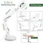 【10x Magnification & Real Glass Lens】LED magnifying glass is professionally designed with a 4.3" real glass lens, which can provide a clear magnifying view without distortion. Up to 10x magnification makes reading/viewing small prints, sewing, repairing, carving, manicuring, soldering, etc easier. It is designed for people who need to work continuously at close range or who need visual aids. There is no dizziness even if use it for a long time. 【3 Color Modes & Adjustable Lighting 10-Levels 】Magnifier with light has 72pcs high-brightness LED lamp beads with an up of 12W &1200 lumens. It's designed with 3 color modes (white, warm, and cool) and stepless dimmable, you can easily adjust the brightness level between 10% and 100%, and choose the most appropriate light source for your environment. 【2-in-1 Desk Lamp & Clamp Light】Magnifying glass with light and stand come with a weighted base and clip. You can use the base as a table lamp, or mount it on any flat surface (maximum thickness <2.1") as a clip light. The clamp can be easily mounted on a desktop, shelf, or workbench without any tools, which not only saves space but also can be easily rotated to free up hands. 【Flexible Adjustment & Long Flexible Arms】The LED lighted magnifying glass has connected metal swivel arms with 3 knobs and 4 springs, the long arms can extend up to 20 inches. 360-degree rotatable light head, which can project light in any direction to meet your needs. 【Eye Protection and Energy-Saving】Magnifying lamp adopt a ring design with 72pcs built-in high-brightness LED providing you with an even, soft light and a large area of illumination. Without glare and flicker, the uniform light also prevents eye fatigue and hurting. It's the perfect gift for people with low vision, the elderly and those who need to constantly focus on close work.