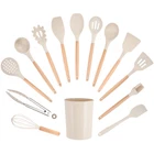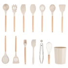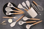 The Mainstays kitchen utensils set makes cooking easier. It guarantees that you have the right tool for the job, and it enhances the enjoyable moments spent with your family. This set covers all your cooking needs, whether you’re baking or cooking. It is a reliable companion in the kitchen. The flexible spatula, food tongs, and utensil holder can be safely washed in the dishwasher. Other utensils with wooden handles should be washed by hand. HEAT-RESISTANT, NON-MELTING, WOODEN HANDLE - Mainstays cooking utensils set are heat-resistant, ensuring they won't melt or produce smoke even in high-temperature frying. The comfortable wooden handle prevents heat transfer, providing a safe cooking experience. This is the go-to basic cooking set for a new home or apartment. SAFE, BPA FREE, FOOD GRADE SILICONE, ODORLESS - Mainstays cooking utensils set is made of high-quality food-grade silicone that is BPA-free and odorless. These silicone utensils for cooking do not react with food or beverages, even at high temperatures. FULLY MEET YOUR KITCHEN NEEDS, NO MORE WASTE OF MONEY - Mainstays utensils set includes 13 tools and a large utensil holder. You will have all the essential cooking tools you need in your kitchen. It includes a ladle, solid spoon, slotted spoon, flexible spatula, pasta server, slotted turner, solid turner, and more. These silicone utensils protect non-stick pans from scratches. NO GAPS, EASY TO CLEAN - The one-piece design eliminates any gaps where food can get trapped, making cleaning a breeze. Please note that due to the wooden handle, these silicone kitchen utensil set for non-stick pan are not suitable for dishwasher cleaning. However, the flexible spatula, food tongs, and utensil holder are dishwasher safe. GIFT IDEA: Mainstays kitchen utensils set makes a thoughtful and practical gift for anyone passionate about cooking. Whether it's a housewarming party, wedding, or any special occasion, Mainstays kitchen utensils set is sure to be appreciated.