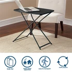 The Mainstays 26" Adjustable Height Personal Folding Table is suitable for a variety of uses. It is great for eating your meals in front of the television or for using as a small workstation. It can also be used for holding snacks and food when you have courtyard or patio parties. This multi-purpose table can be folded flat for easy storage in a closet, under a couch, or behind a chair. This versatile living room folding table cleans easily and is lightweight and portable. Need extra workspace in your Dorm Room? The Mainstays 26" Personal table is the perfect solution. For added convenience, this lightweight folding table does not require any assembly. Mainstays furniture offers an ideal solution for anyone who wants stylish, versatile home and office furnishings. With a variety of different furniture collections reflecting clean, modern style and simple forms that can fit in with nearly any style of decor, Mainstays furniture offers something for everyone. Look out for bedroom, lounge, office, and storage furniture pieces in this category, including some items that require no tools for assembly. Mainstays 26" Adjustable Height Personal Folding Table, Black Multi-purpose indoor folding table Folds flat for easy storing No assembly required Easy-clean top Dimensions: 18" L x 26" W x 28" H Model No.: MS13-017-046-01