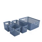 This Mainstays 4-Piece Moonlight Blue Decorative Trash Can Set fits in anywhere and provides plenty of space and storage for the items you need to keep on hand without taking up too much room. Perfect for the bedroom, kitchen, or closet. These baskets provide seamless storage that will make your house or apartment feel more organized. Convenient storage bins that are durable and will last you years of use. From toy storage in a child's bedroom to tool storage in the garage, and everything in between, you can easily organize your space with these baskets. You can use this portable storage basket to store as many items as you want. Set includes: (1) Medium Decorative - 14 x 11.6 x 5.3 inches; (1) Long Decorative - 13.6 x 5.5 x 5.1 inches; (2) Mini Medium Decorative Baskets 6.7 x 5.5 x 5.1 inches Features two cut-away handles for easy transport of stored items. Can be used individually or together for maximum versatility. The mesh design allows light and air to pass through, helping to inhibit mold growth. Even on a high shelf, it lets you see what's stored. Easy care, just wipe clean with warm water and mild detergent as needed. Set of 4 Medium basket dimensions: 14 x 11.6 x 5.3 inches Narrow basket dimensions: 13.6 x 5.5 x 5.1 inches Mini basket dimensions: 6.7 x 5.5 x 5.1 inches Color: Moonlight Blue