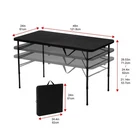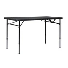 Provide all of the table spaces that you need in all kinds of settings with the Mainstays 4' Fold-in-Half Adjustable Table in Rich Black. This versatile rectangular table is sturdy and durable, made with reliable materials, and folds for easy storage and transportation. When you're finished using it, just fold in the metal legs, fold the table in half, and your new compact table is ready for transport! Its classic black color is sure to fit in at any gathering in any setting, and its spacious expanded 48" long table-top is ideal for holding a wide variety of foods, crafts, or whatever items you are working with! It's great for everyday use both indoor and outdoor, as a serving table, craft supply table, outdoor meal table, or for whatever purposes you may need. The plastic tabletop is easy to clean with no fuss just wipe it down with a damp cloth, and it will look as good as new! The carrying handle makes it perfect for taking on the go, for outdoor barbecues, game nights, school activities, parties, or tailgating events. The table comfortably seats 4 adults, so all of your friends and family can be included. Mainstays 4 Foot Fold-in-Half Adjustable Indoor Outdoor Table, Rich Black Product Dimension:48" W x 24" D x 21.14" - 24.4" - 28.03" H Comfortably seats 4 adults Easily folds in half for convenient storage Classic black color coordinates with almost any decor! Includes a built-in carry handle, for easy transportation Rubber stoppers on the legs for added grip on floor surfaces Appropriate for use indoors or outdoors Easy-to-clean resin surface Strong durable powder-coated metal construction Number Of Pieces: 1 x folding table