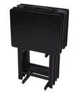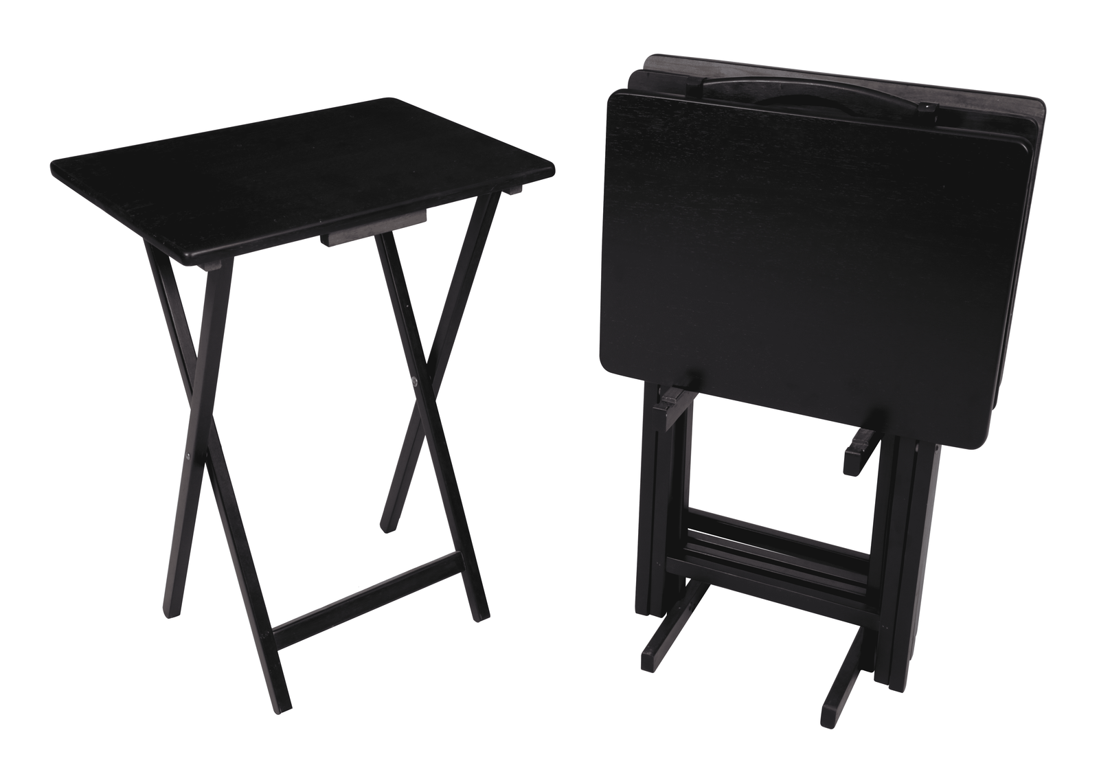 Product details Enhance your living space with the Mainstay Indoor 5-Piece Folding Tray Table Set – a stylish and practical addition designed to elevate your home. This set includes four folding tray tables and a smartly crafted storage rack, providing both convenience and versatility. Mainstay folding table dimension L 19.09 X W 14.57 H 26 inch. Mainstay indoor folding table assemble height is 26 inch and weight combine weight of 4 table is 14.28 KG. Mainstay Mainstay Indoor 5-Piece Folding Tray Table Set comes with 4 tables + 1 storage rack, storage rack need to be assembly which is very easy to assembly the rack. Mainstay indoor folding tray table comes with assembly instruction provided in 2 languages English and Spanish in which each assembly steps described very clearly with drawing this helps the user to assembly the rack within no time. Mainstay indoor folding tables are best space saving its black color finish complements any home decor. Upgrade your home with the Mainstay Indoor 5-Piece Folding Tray Table Set – where practicality meets style for a harmonious living experience. Mainstay Tables sets Space-Saving Elegance: Transform your living area with this 5-piece set, featuring four folding tray tables and a storage rack. Ideal for compact living spaces, this ensemble offers functionality without compromising on style. Individual and Combined Use: Each folding table weighs a mere 3.5 kg, making it easy to transport and set up for various activities. Combine all four for a cohesive surface, or use them individually for versatile functionality. Mainstays Indoor Table Compact Dimensions: The folding tables measure L 19.09 x W 14.57 x H 25.98 inches, providing ample surface area for snacks, meals, or work. Their sleek and compact design ensures seamless integration into any room. Mainstays Indoor Table Durable Construction: Crafted for durability, these tables offer a reliable surface for various activities. The tables are easy to clean, ensuring they maintain their elegant appearance with minimal effort. Convenient Storage Rack: The set includes a storage rack designed for easy organization. While the tables effortlessly fold for storage, some assembly is required for the rack, providing a secure and stylish solution to keep your tables neatly organized. Versatile Usage: Perfect for entertaining guests, enjoying meals in front of the TV, or creating a temporary workspace. The versatility of this set makes it an essential addition to any home. Contemporary Design: The neutral color palette and modern design of these folding tables add a touch of sophistication to your living space, seamlessly blending with various interior styles. Specifications Features Storage Brand Mainstays Color Black Assembled Product Weight 29.11 lb