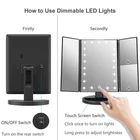 With 2X and 3X Magnification Design: There are 2 magnifying glass plates (magnification 2x/3x), when you need fine makeup details (such as eyeliner, mascara and lenses), the high-definition mirror is very clear, you can see the face For every detail, so that you can enjoy meticulous makeup. 21 Smart Lights: There are 21 LED lights in the mirror. The brightness can be adjusted by touching the sensor switch, and the LED lights can be dimmed or brightened by long pressing the sensor switch. Very suitable for use in dimly lit areas.The base recess can hold Jewelery cosmetics, watch, earrings, bracelets, etc.to meet our daily needs. 180 degree rotation & Tri-fold: The light-emitting makeup mirror on the worktable can be easily adjusted, and the viewing angle can be fixed perfectly and comfortably. Tri-Fold Design :Easy for take away and daily maintenance, can open or fold it like a book when not using to protect it away from the dust or other scratches.The tri-fold and detachable design allows you to take it with you and enjoy delicate makeup anytime, anywhere. Practical design: Use UV coating to make the mirror more polished and smooth, thereby preventing scratches on the surface, fingerprints and oil stains. ABS plastic boxes are more durable than ordinary plastics, which makes the mirrors last longer. Dual power supply: This Led mirror can be operated with 4 AAA batteries (not included in the package) or USB cable (including USB cable), the mirror itself cannot power