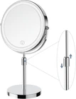 14''-17'' Height Adjustable and 360° Rotatable For Most people:Our makeup mirror is perfect for use in your home. It features adjustable height ranging from 14'' to 17'', allowing you to customize it to fit your dresser or vanity height. The 360° rotatable design ensures you can find the perfect angle with ease. Ideal for both men and women. 80 Lamp Beads and Built-in 3000 mAh Battery:The LED makeup mirror is equipped with 80 lamp beads that deliver ultra-bright light. This mirror not only enhances natural light during the day, but also provides ample illumination in darker settings at night. Additionally, the mirror features a built-in 3000 mAh rechargeable battery that provides over 10 hours of continuous usage once fully charged. 1X/10X Magnifying Double Side:With 1X/10X magnification, the classic dual-sided design of lighted makeup mirror with magnification makes achieving a flawless makeup look a breeze. Both sides are perfect for makeup application as well as detailed tasks such as wearing contact lenses, shaping eyebrows, shaving, styling hair, facial treatments, and applying mascara. 3 Color Lights and Stepless Brightness:This makeup mirror with lights offers natural light, warm light, cold light, and adjustable brightness to ensure soft, uniform illumination that reaches every corner of your face. Simply tap the sensor switch to switch between light colors and hold it down to adjust the brightness level, catering to your specific needs in various settings. Great Gifts and Quality Assurance:Whether you're looking for the perfect present for Mother's Day, Valentine's Day, birthdays, or Christmas, our vanity mirror with lights is a fantastic gift option for the important women in your life, such as girlfriends and family members.And we offer 1-year quality assurance, if you have any questions in use, please contact us. Product Description 360° Rotatable Mirror Designed with 360° rotation, makeup mirror with lights can be freely adjusted to any angle, making it clearer and easier to check your makeup or skincare. Meet different lighting Needs This makeup mirror with lights offers natural light, warm light, cold light, and adjustable brightness to ensure soft, uniform illumination that reaches every corner of your face. Supper Bright Light and Last Long This makeup mirror built-in 3000 mAh battery with 80 lamp beads that deliver ultra-bright light. It provides over 10 hours of continuous usage once fully charged.