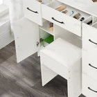 Makeup Vanity Desk Stool Set with Mirror and Dimmable LED Bulbs Dressing Table Description: [COLOR & BRIGHTNESS ADJUSTABLE LIGHT]- The light is brightness adjustable, with 3 different color moods (warm yellow, warm white, cold white), so you can choose the brightness to meet your needs. [STORAGE CABINET & DRAWER]- The vanity set contains 5 drawers, 4 shelves and one 2-layer cabinets. All your cosmetics and skin care products can be sorted and stored tidily to the vanity table. [DURABLE MATERIALS & EASY INSTALLATION]- Made fromenvironmental MDF and wood, with metal handles, has great stability and durability, making itelegant. Also, the firm stool possesses excellent load capacity. Detailed and easy-to-follow instruction is made for your assembling it fast and correctly. [ELEGANT DESIGN]- The elegant design with beautiful lights makes the vanity set aesthetic and functional. What's more, it is of high fitness, perfect for dressing room, bathroom, workplace, hair salon and so on, which is a great gift for your wife, daughter, or girlfriend. Specification: Colour: White Material: MDF Overall dimension(L x W x H): 100 x 40 x 140 cm / 39.3 x 15.7 x 55.1 inch Mirror Size (L x H): 48 x 60 cm / 18.8 x 23.6 inch Stool Size (L x W x H) : 36 x 24 x 40 cm / 14.1 x 9.5 x 15.7 inch Style: Morden Package Includes: 1 x Dressing Table 1 x Mirror 1 x Stool 1x 10Pcs Led Lights 1 x Instructions