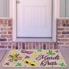 Features: Mardi Gras home supplies: The Mardi Gras doormat indoor is adorned with element patterns such as feathers and masks. Its vibrant and lustrous colors, along with sharp and distinct printing, make it an enchanting enhancement. It creates a convivial and alluring atmosphere that fills your home or office with the festive atmosphere of Mardi Gras. Easy to maintain: The Mardi Gras doorway rug is quick and easy to clean, ensuring your entryway remains tidy and inviting all the time. Just shake off the dust and debris or dirty, making it a practical addition to any home. If there are creases when you receive the floor mat do not worry, let it stand for a period of time to restore perfection. Specifications: Quantity: 1 piece Material: linen, rubber Color: multicolor Size: (about) 29 x 17 inches Package includes: 1 x Mardi Gras door mat Notes: Manual measurement, please allow slight errors on size. Due to the screen display, the color of the item may differ slightly from the picture. Package Include: you will receive 1 piece of Mardi Gras door mat, classic and cool, you can place it at the front door, back door, entrance, kitchen, laundry room, bedroom, garden, near the backyard or patio Mardi Gras Theme Design: the Mardi Gras doormat is printed with element patterns like feather, mask, and more. Its vivid colors and clear printing make it a charming addition, creating a friendly and inviting atmosphere for your home or office Reliable Material: our Mardi Gras kitchen mat is made of quality linen and a non-slip, water-absorbing rubber backing, strong and reliable, precisely sewn, ensuring it's not likely to tear or break, and the colors don't fade easily Proper Size: this Mardi Gras kitchen rug measures approximately 29 x 17 inches. This size fits most doorways well. It not only serves a practical purpose by effectively cleaning dirt from shoes but also adds a decorative touch to the entrance Wide Application: the Mardi Gras mat outdoor is an ideal housewarming gift and a wonderful holiday present for friends and family. It can be used in various locations such as the entrance of your home or office, adding a festive element