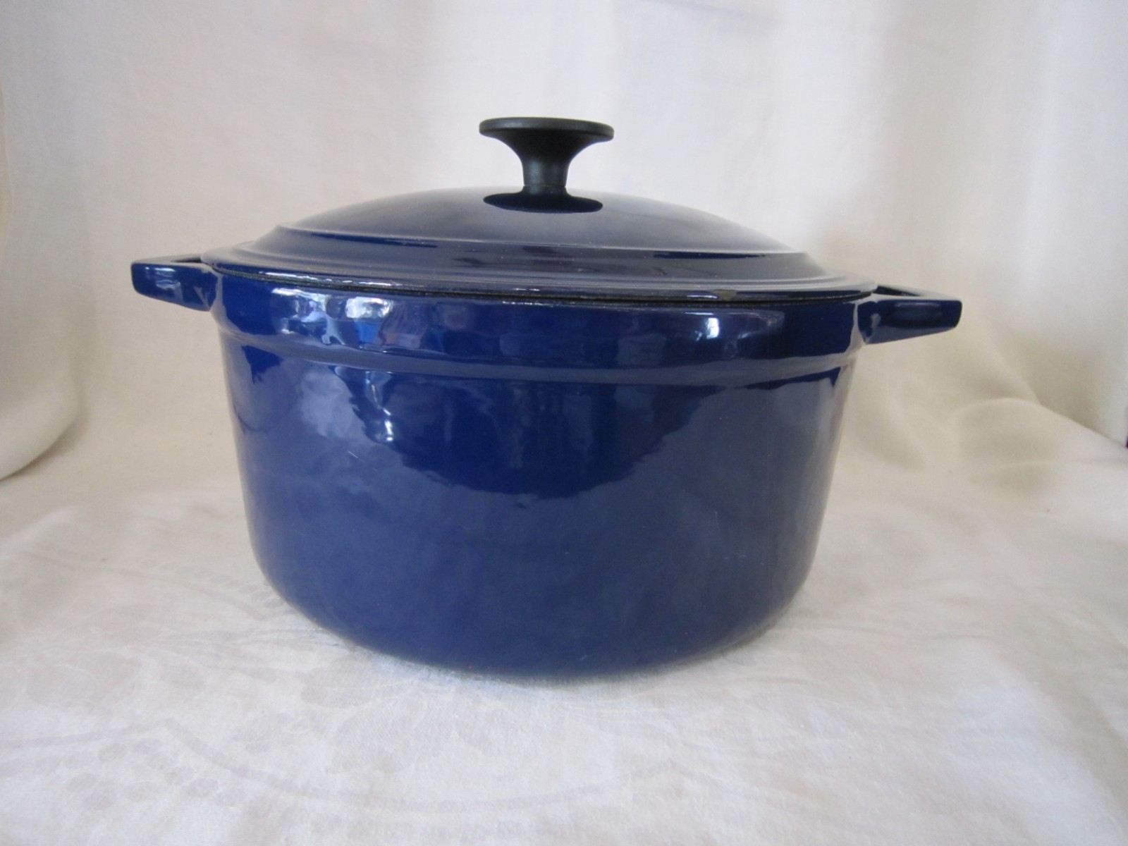 Beautiful Colbalt Blue Martha Stewart Enameled Cast Iron Dutch Oven Lid 5 Qt. 10” X 5” Holds 5 Quarts Sits Flat Small surface chip on Lid (See Last Photo) Please See Photos. Any Questions Feel Free to Contact Me.