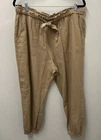 Mason & Belle Womens Joggers XXL Tan Tie Waist Belted Utility Linen Blend Elevate your casual wardrobe with these stylish Mason & Belle women's joggers. Crafted from a linen blend fabric, these pants feature a tie waist belted closure, elastic hem, and deep cargo style front pockets for a comfortable and relaxed fit. The jogger design and flat front create a flattering silhouette, perfect for any occasion from travel to parties or just running errands. These pants are available in size 2XL and come in a trendy brown color that is perfect for summer, fall, or spring. Fit- XXL fits around a size 16. Bohemian, Summer, Island, Vacation, Beach, Lightweight, Breathable, Coastal