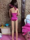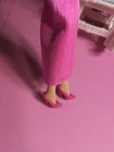The Mattel Barbie 1980 Beauty Secrets #1290 Pink Outfit is a vintage Barbie clothing set from the Superstar Era. This set includes a pink skirt and jacket. I have added a bodysuit, shoes and a bottle to bring to the party. All are in a vibrant pink color with lace detailing on the jacket and skirt. The outfit is part of the Barbie franchise and designed for a Fashion Doll measuring 11 inches. Made of cloth material, this set is original and showcases a loungewear style popular in the 1980s. A perfect addition for collectors of vintage Barbie items. All items are in very good condition. I did note a little wear to the skirt. Please see photos. Doll and background items not included.