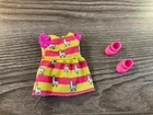 Kelly Doll Outfit This Kelly Clothes Set features A sleeveless pink and yellow striped dress with llama print on both sides A pair of shoes are included Set is in Nice Condition ***Please don’t hesitate to make an offer! *** ***Buy It Now :$ 4.50*** OR Best Offer ***Shipping: $ 4.75*** ***Happy to combine shipping for you*** *** Please let me know if you have any question, Happy to help in any way I Can*** ****Please , if you have the time check out my newly opened eBay store. I will be listing many Barbies, clothing, & accessories. As rims goes on I hope to add more fun collectible and vintage items. Like my store to see my newly listed items. Thanks so much!