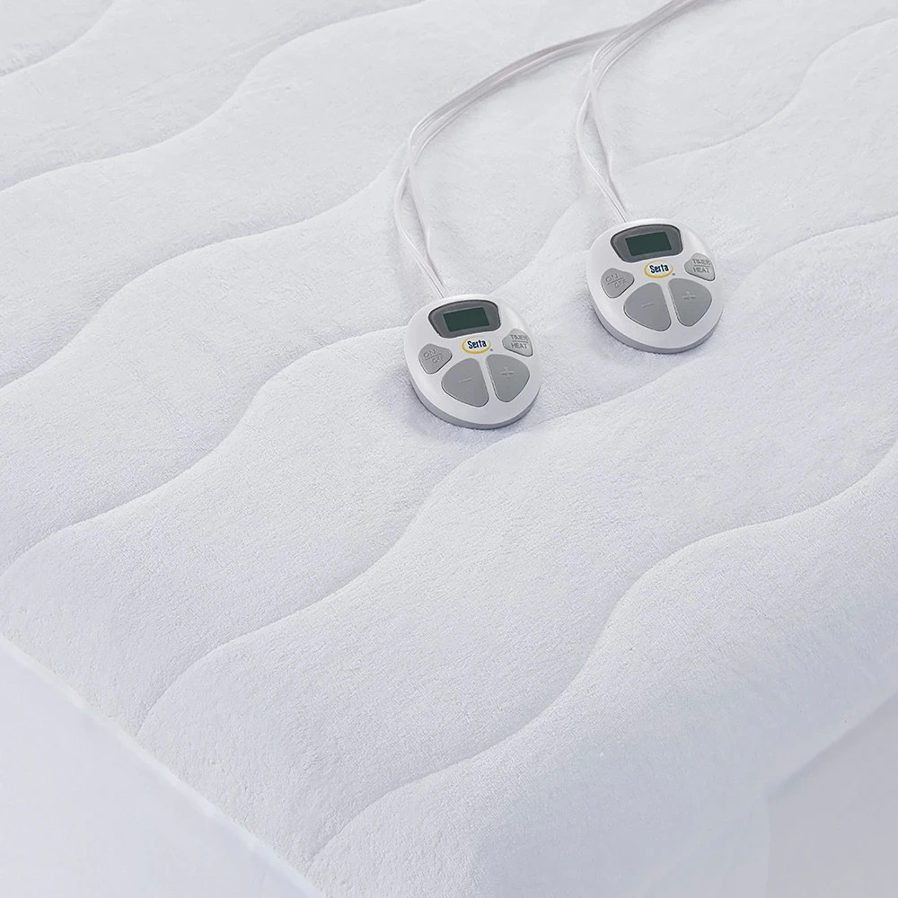 *New Open Box Never Used Display Floor Model*Finished Size 72in. x 84in. + 15in.The Serta Plush Heated Mattress Pad in King Cal size is designed for maximum comfort and luxury. Made with 100% polyester fill and featuring a solid white color, this rectangular-shaped mattress pad is perfect for all seasons. With 10 specialized heat settings and overheating protection, it ensures a cozy and customizable sleep experience. The hypoallergenic material, ETL certification, and easy-care instructions make it a convenient and high-quality addition to any bedroom.