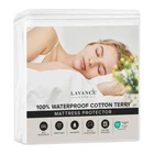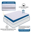 80% Cotton and 20% Polyester Terry Cloth cover proved by Oeko-tex Standard 100 Bj025 141121 TESTEX Certificate 100% WATERPROOF: 100% TPU backing prevents the mattress from getting wet from urine and sweat, keeping it new and clean 360° FITTED STYLE ALL AROUND ELASTIC: Queen size waterproof mattress protector size - 60" x 80"(152 x 203cm). With elastic band, the deep-pocket cover fits 6"-21"(15cm x 53cm) mattresses and avoids moving 100% QUIET & BREATHABLE: cotton terry mattress protector is soft, breathable and skin-friendly. Noiseless TPU backing protects your mattress while allowing you to get a good night's sleep MACHINE WASHABLE: Warm or hot wash (95°C/200℉) and low tumble dry (55°C/130℉ max). Easy to clean, Easy to store