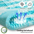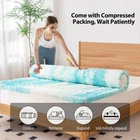 5-Zone Pressure : This mattress topper features a unique 5-zone design that provides tailored support for your head, neck, shoulders, back, hips, and legs, effectively relieving pressure points and enhancing sleep quality. Cooling Infusion: Infused with , this cooling memory foam mattress topper actively disperses heat and improves airflow, making it an ideal choice for sleepers who prefer a cooler sleeping environment. Supportive Comfort: Made from CertiPUR-US certified high-density memory foam, this memory foam mattress topper offers excellent support while reducing discomfort, ensuring a cozy and stable sleep experience every night. Versatile Upgrade Solution: Easily placed on top of an existing mattress, this mattress topper revitalizes older beds by providing additional softness and support, extending their lifespan and improving overall comfort. Quick Recovery Time: The mattress topper arrives compressed; simply lay it flat in a well-ventilated area for 24-48 hours to allow it to fully expand to its original size, ready for immediate use.