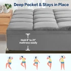 Soft & Optimal Filling: With advanced 3-Dimensional (3D+7D) snow down alternative filling, our mattress toppers are twice that of the traditional mattress pads. It provides better softness and cushioning, which could help you enjoy a whole night's sleep Reviving Your Old Mattress: If your mattress is way too firm, adding our mattress topper cover is a excellent resolution. It will add softness and comfort to old and hard foam mattresses. Also This is an economic way to extend the life of old mattresses without replacing them with expensive new ones Quality Workmanship: Delicate square quilting could prevent the filling from moving or leaking out. Double border design could make it more fluffy and more exquisite Deep Pocket & No-Slid: Deep elastic pocket completely goes beneath your 8’’ to 21’’ mattress. It could tightly wrap your mattress 360°all-around, without sliding or making noise in any sleeping position Machine Washable & Easy Care: Our mattress topper is fully machine washable. You can clean it at home without having to send it to an expensive dry cleaner. Save time and costs. It can be easily folded and stored : Since the mattress topper comes in a vacuum bag, we advice to tumble dry it on low heat to let air fluff it up. Please feel free to us about how to fluff it and any other issues. We will definitely give you a satisfactory reply in time