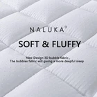 ✓【3D Bubber Fabric for Healthier Sleep 】- New Design 3D fabric to give a massaging effect while you sleep. The massaging bubbles Mattress topper will giving a more deepful sleep ✓【Ultra Soft & 2'' Extra Thick】- With an ultra soft shell made of the finest 100% Microfiber and lofty Down Alternative Polyfill, this mattress topper excels in comfort.Enjoy a great nights sleep and protect your mattress with the Fiber Bed Mattress Protector from Naluka. ✓【DEEP ELASTIC POCKET-Perfectly Fit 8-22" Mattress】-Depp Fitted Skirt fits any mattress up to 8-22" deep and the New Stitching design of this quilted pillow top mattress cover avoids any shifting. ✓【Cooling&Breathable Fabric】- the breathable fabric of this mattress topper allows for effective air flow to diminish overheating so you're able to enjoy a refreshing and restful relaxation experience. Stay perfectly cool and comfortably warm with optimal temperature control. Avoid being hot and sweaty. ✓【100% Satisfaction】- We trust our products' quality and want your fully satisfaction, If it appears any quality problem or anywhere you are not satisfied, we promise to refund. Product Description Naluka Mattress Pad uses the latest cooling technology to help you get a more comfortable night's sleep. Some people may ask, will it feel cold in the cold winter? No, this cooling technology only accelerates the flow of air, so that the body's sweat can be quickly discharged from the Mattress Pad, so that we do not feel bored and uncomfortable when sleeping, and can better protect the delicate skin of infants and young children. Naluka Mattress Pad - Your most sensible choice This hotel quality down alternative mattress topper without chemical smell and heat generation is perfect for those with aller-gies to down who still want the soft of down, or anyone who disgust the odor of memory foam. Start your restful sleep from a great down mattress topper. Ultra Soft & Luxurious Bring versatile comfort to your bed with the Down Alternative Topper from Home. Reversible top offers a luxurious down alternative as it covers and protects your mattress every night. GET A GOOD NIGHT’S REST Cushioning your head and neck with gentle support, these pads will make you feel like you are sleeping on cloud nine. Get a good, restful sleep night after night so you can wake up feeling refreshed and well-rested to start your day each morning. EXTRA THICK-2 inch It provides extra plush padding and support for your shoulders and hips. Excellent way to restore the support of an old mattress or simply improve the softness and comfort of any newer mattress. 3D Bubble Fabric New Design bubble fabric to give good effect while you sleep. The bubbles fabric will giving a more deepful sleep Perfect Fit Stretchable Skirt High Stretchable Skirt ensures a secure fit and grip on any mattresses and is perfect for power bases.This mattress pad is perfect to revitalize your sleep and will fit mattresses up to 18" deep.