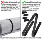 Save Money On Moving Costs - Rather than having to rent a big truck to fit your mattress or movers, save money and do it yourself by being able to fit your mattress in your car! Compress Your Mattress - With the vacuum seal technology, and household vacuum cleaner can be used to compress your mattress to a fraction of its size. Just like when it was first delivered to you. Protect Your Mattress - An added benefit of the airtight seal that is formed when closing this bag is that it protects your mattress from dust, allergens, moisture, and bugs, keeping you mattress clean and safe during storage. Durable Construction - The mattress bag was made with durability in mind. The leakproof valve, double zip seal, and 100 micron (4 mil) thick plastic are premium quality. Reusable Design - The mattress bag is made with all reusable components. With careful use, this bag can be used multiple times and save you money anytime you move the mattress. Simply open and close the zip lock as many times as you need. PATENT PENDING β π¦ππ₯ππ‘π π¬π’π¨π₯ π ππ§π§π₯ππ¦π¦ - Compress your foam or inner spring mattress with vacuum seal technology to the original size it came packed to you. This makes moving and returning it super easy! Works with mattresses from all the foam mattress and inner spring mattress companies that ship their mattress in a box. β π¦ππ©π π π’π‘ππ¬ πͺππππ π π’π©ππ‘π π’π₯ π₯ππ§π¨π₯π‘ππ‘π - Mattresses can be a pain to move or return, they are big and bulky. By compressing the mattress you can save on moving costs by not having to rent a truck to move it. Just move it in your car for free! β πππ₯π§ππππ§ π£π₯π’π§πππ§ππ’π‘ - The airtight seal protects your mattress against moisture, dust and dirt. With a double zip seal, this mattress bag ensures a good seal. β π₯ππ¨π¦ππππ πππ - With proper care, this bag can be reused for multiple moves as it is made with durable components. This will save you a bunch of money in the long run. β ππ¨π₯ππππ π£πππ¦π§ππ - This bag is made with durability in mind, it is 125 microns or 5 mil thick to ensure reliability.