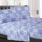 The McKenzie Sheet Set embraces the chaos and messiness of life with a smile. Smooth strokes of watercolor paint and blotted ink are artfully printed on the smooth microfiber fabric for a realistic look. The busy design maintains its cool composure with the monochromatic balance of faded navy on an ultra-light blue background. With an up-close view, you can see that the intricate pattern is actually a simple mix of classic doodle lines that may have filled the edges of your school notebook. Chevron lines, linked diamonds, X grids, and gemstone shapes link together in a messy, yet perfectly poised patchwork. Machine washable.Twin Set includes 1 fitted sheet, 1 flat sheet and 1 pillowcase, Full, Queen, King and Cal King Sets include 1 fitted sheet, 1 flat sheet and 2 pillowcases.Sheet Free Shipping Over $49.99* Details McKenzie 4-Piece Patterned Deep Pocket Sheet Set Product Description: The McKenzie Sheet Set embraces the chaos and messiness of life with a smile. Smooth strokes of watercolor paint and blotted ink are artfully printed on the smooth microfiber fabric for a realistic look. The busy design maintains its cool composure with the monochromatic balance of faded navy on an ultra-light blue background. With an up-close view, you can see that the intricate pattern is actually a simple mix of classic doodle lines that may have filled the edges of your school notebook. Chevron lines, linked diamonds, X grids, and gemstone shapes link together in a messy, yet perfectly poised patchwork. Machine washable.Twin Set includes 1 fitted sheet, 1 flat sheet and 1 pillowcase, Full, Queen, King and Cal King Sets include 1 fitted sheet, 1 flat sheet and 2 pillowcases. Sheet set Patterned Microfiber Twin Size Only Has 1 Pillowcase Machine washable 14 inch deep pocket Coordinate with other items from the McKenzie collection Dimensions Twin(1)fitted 75"Lx39"W (1)flat 96"Lx66"W (1)pillowcase 20"Lx30"W Full(1)fitted 75"Lx54"W (1)flat 96"Lx81"W (2)pillowcases 20"Lx30"W Queen(1)fitted 80"x60" (1)flat 102"x90" (2)pillowcases 20"x30" King(1)fitted 80"x78" (1)flat 105"x102" (2)pillowcases 20"x40" Cal King(1)fitted 84"x72" (1)flat 102"x108" (2)pillowcases 20"x40"