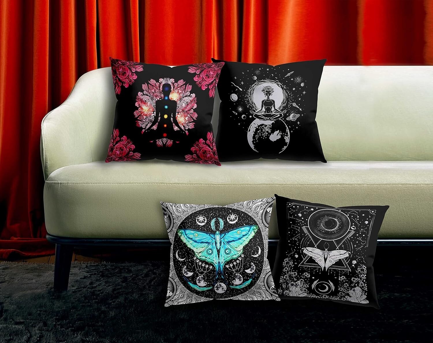 Meditation Pillow Covers Set - Meditation Room Decor, Yoga Room Decor, Gothic Pillow Covers 18x18 Set of 4, Witchy Decor Aesthetic, Meditation Gifts, Tarot Gifts, Gothic Decor 100%flannel Size:18x18 inch. Material:100% flannel. Great Addition For Home Decor:Help you to change home style or add the festival happy atmosphere immediately. Unique Gift Ideas: You can give them as gifts to your friends, family, colleagues, classmates... Washing Tips: Machine wash in cold water gently. Don't bleach. Help you to change home style or add the festival happy atmosphere immediately. You can give them as gifts to your friends, family, colleagues, classmates...